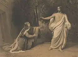 Christ's Appearance to Mary Magdalene after the Resurrection is a painting by Russian artist Alexander Ivanov (1806–1858), completed in 1835. The painting is housed in the State Russian Museum in St. Petersburg (inventory number Zh-5263). It measures 242 × 321 cm.[1][2][3] The canvas depicts Mary Magdalene and Jesus Christ in a life-size two-figure composition. The painting depicts the moment in the Gospel story when Mary Magdalene recognises the risen Christ. However, he stops her impulse by telling her, "Do not cling to me, for I have not yet ascended to the Father".[4][5]