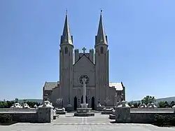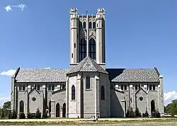 Christendom College in Front Royal, Virginia, is a Catholic liberal arts college founded in 1977.[1] The college's first chapel was a repurposed building constructed in the 1940s and later expanded in 1988. A new building, also named Christ the King Chapel, opened in 1995 and was consecrated by Cardinal Jan Pieter Schotte.[2] Due to increased enrollment in the 21st century, the college outgrew the chapel and plans were made to build a larger structure.[3]