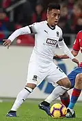 With Peru, Cueva usually plays in an offensive midfield role through the centre of the pitch, for his club sides, such as Toluca, he plays more frequently on the flank, mainly on the left wing. A good dribbler, he is known for his change of pace over short distances and his ability to manage himself well in tight spaces.[48] His playing style has drawn comparisons with that of Brazilian playmaker Paulo Henrique Ganso, who plays for Sevilla, as Cueva occupies a similar function for São Paulo, in the way that he tends to move more through the pitch, making attacking runs into the rival area, scoring goals, and occasionally also helping out defensively by marking opponents.[49] In his side's 4–0 victory against rivals Corinthians on 5 November 2016, Cueva demonstrated his great talent by netting a goal and providing three assists for his teammates David Neres, Chávez and Luiz Araújo.[50]