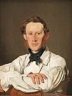His father was a goldsmith. As an only son, he was expected to follow his father's profession, but after arriving at the Royal Danish Academy of Fine Arts, decided to become an artist instead. He began by studying engraving with Johan Frederik Clemens, then did modeling, but eventually settled on being a painter.[1] In 1823, he exhibited copies of paintings by Frans Pourbus the Younger, which he had seen at the Rijksmuseum.[2]