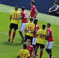 At the start of the 2018–19 season, Kabasele started in the first seven league matches, as he helped Watford off to a winning start.[87] This led Kabasele stating that experience is helping him establish as a leader.[88] However, he was sent–off for a straight red card in the 81st minute, having come on as a substitute four minutes earlier, as the club lost 4–2 in penalty shootout against Tottenham Hotspur in the third round of the League Cup.[89] Following this, Kabasele had his suspension rescinded.[90] A week later on 6 October 2018 against Bournemouth, he was sent–off once again for a second bookable offence, as Watford lost 4–0.[91] Following his return, Kabasele was placed on the substitute bench for the next four matches before returning to the starting line–up, in a 2–1 loss against Manchester City on 4 December 2018.[92] He then started in the next four matches before suffering an injury after 16 minutes of a match against Chelsea on 26 December 2018, missing four matches.[93] Kabasele returned to the starting line–up against Burnley on 19 January 2019.[94] However, his return was short–lived when he found himself out of the starting eleven for the rest of the 2018–19 season.[95] Despite this, Kabasele started five matches in the last remaining months of the season.[96] During the 2018–19 season, he made 23 appearances in all competitions.