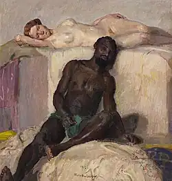 At first, he created realistic canvases using a dark palette. After 1890, he used brighter colors with lighting effects and broad brushstrokes. He is considered to have been one of the pioneers of German plein-air painting. From 1893 to 1915, he worked on a themed series of paintings he called "Bathing Boys".[1] His landscapes were accomplished in Norway and along the Dutch sea coast as well as in Southern Germany. After 1919, he began to produce etchings of a religious nature.