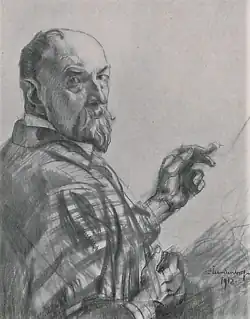 In 1890, he had his first public display at the Munich International Art Exhibition in the Glaspalast and, two years later, became one of the founding members of the Munich Secession.[2] He exhibited regularly until 1916. In 1895, he started a private art school and taught drawing at the Munich Association of Women Artists from 1899 to 1905. At that time, he became a professor at the State Academy of Fine Arts in Stuttgart.[2]