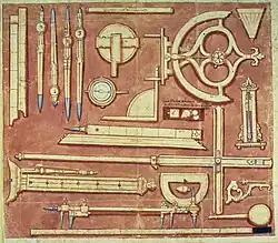 Drawing of the Schissler's Box of Mathematical Instruments preserved in the Museo Galileo