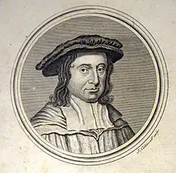 Christopher Gibbons was born to Orlando and Elizabeth (née Patten) in Westminster where he was baptized on 22 August 1615 at St Margaret's.[5] While his exact day of birth is unknown, although it was likely only a few days before his baptism as early baptisms were common practice.[1] He was probably named after Orlando's friend and patron Sir Christopher Hatton,[1] although it may have been after Elizabeth's brother, Christopher Edmondes.[6] Gibbons was the 2nd son, but eldest surviving,[n 1] of Orlando and Elizabeth.[7] Most information on the first 10 years of Gibbons' life is speculative.[1] A 1663 letter from King Charles II suggests that Gibbons sang in the Chapel Royal under the direction of Nathaniel Giles.[8][9][n 2] Gibbons likely studied music with his father and like encouraged to follow musical tradition of the family, resulting in him being Orlando Gibbons' only child to have a musical career.[10] 4 months after Charles I ascended to the throne in 1625 Orlando would die on 5 June 1625, leaving Elizabeth, 10 year old Christopher and Orlando's other children to go live with their uncle Edward in Exeter.[9][11]