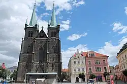 The main landmark of Chrudim is the Church of Assumption of the Virgin Mary on the town square. The originally Gothic building was founded before 1349 on the site of a castle. After it was damaged by several fires, it was reconstructed to its current Neo-Gothic form in 1857.[16] Another notable churches with Gothic bases are Church of Saint Catherine, Church of Saint Michael, and Church of the Exaltation of the Holy Cross.[17]