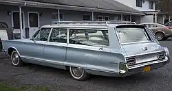 Chrysler played catch-up on some wagon specific features in 1969: The tailgate became a two-way door-gate, able to swing sideways or drop downward, a feature Ford had pioneered in 1965. The rear axle track was widened nearly three inches to 63.4 inches (1,610 mm), enabling a full 48.5 inches (1,230 mm) wide load floor between the wheel wells, a feature GM had also pioneered in 1965. Chrysler sought to leapfrog those competitors with a few station wagon exclusive features of its own, including passenger assist handles integrated into the rear opening trim molding, and a tailgate window washer that was contained entirely inside the tailgate.[7]