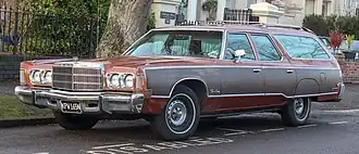 For the 1974 model year Chrysler introduced its new large car lineup originally planned for the previous year. The timing could hardly have been worse... The Arab oil embargo of late 1973 had Americans waiting in line for gasoline coast to coast, sometimes for hours. Big cars quickly became a glut on the market, despite the fact that Chrysler's new models were some of the best large cars Chrysler had produced in years. The new styling was a clear departure from the fuselage generation and appeared to share the proportions and design cues of GM's 1971 large car redesign. The body sides had a more pronounced tumble home. A-pillars were thin, and beltlines were lower, yielding significantly more glass area. Energy-absorbing bumpers were integrated into the designs, front and rear. The 1975 Town & Country nine passenger station wagon was US$8,099 ($86,083 in 2024 dollars [2]) and 4,764 were recorded to have been manufactured.[7]