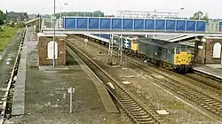 The station is covered by a long-line automatic P.A system to provide real-time train running details. Passenger information screens are also installed and there is a ticket machine available for passengers to buy tickets (card only) or a permit to travel (for cash fares). Access to all four platforms is via footbridge, so there is no step-free access to any of the platforms.[5] The former booking office at street level is now in private commercial use as a restaurant, but the platform level buildings were all demolished by 1990.[3]