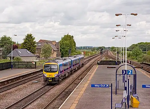 A TransPennine Express Class 185 passing the station in 2017