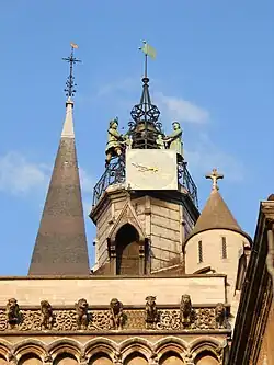 Above the façade there was originally intended to be a pair of square towers, but only the foundations exist. The southern one serves as a support for the jacquemart.