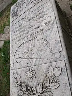 The church is located at the foot of the Mitridatskaya steps (there are 432 steps), which rises to the Mitridat Hill where there are a series of ancient sites. St John's Baptist Church is one of the oldest Christian churches built in the Byzantine architecture style; it was built during the Khazar era in the 8th century.[7] An inscription in the older part of the church reads: "Here lies the servant of God Kyriakos, a son of George, a grandson of Vindira. He died on the month of June 3, induction 10th, in the year 6265 from Adam".[7] This has been interpreted as the year 757 AD. During the period of the Soviet Union, the church was used as a gem museum.[8] Following the restoration works carried out in the 1980s, church services have been resumed since 1990.[7] In 1982, Tatjana Ivanovna Makarova published an article, Archaeological dating of the John the Precursor church in Kerch.[9]