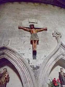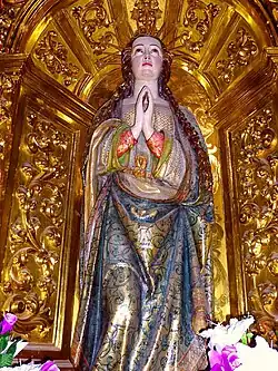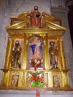 The reredos, created by Italian artists, was originally built for the Co-cathedral of Santa María de la Redonda, but the cathedral chapter rejected it because it contained coats of arms of the donor, Arnao de Bruselas, being donated to the church of Palacio.