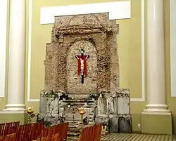 Following restoration, the right altar was preserved as a monument in the state it was in after years of neglect and deliberate destruction.