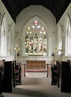 The church has several stained glass windows which mainly date from the 19th century. There is a Norman baptismal font, and the 17th century pulpit is believed to have come from the chapel of Corpus Christi College,. The organ was built in 1851.[2]