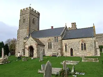 The church was built in the 14th century on the site of an earlier church which had been on the site at least since 1259.[2] It was restored in 1698 with further Victorian restoration in 1860.[1] The church is next to Court House which housed the Lords of the Manor who are commemorated in the church.