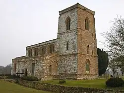 The current church dates to the 13th century. It is thought to have been established in 1209 on the site of a wooden Anglo-Saxon church,[3] as a chapel under St John the Baptist Church in Blisworth.[4] This lasted until the Dissolution of the Monasteries when the Knightley family demolished most of the village to enclose land for sheep farming.[5] The church was protected from demolition by the fact that it had had land granted to it to establish a chantry in Bedfordshire.[4] In 1690, the chancel was rebuilt and later, the church had effigies of the Knightley family installed after a number of them were buried in the church.[4] The church was granted Grade I listed status in 1968 and was amended in 1987.[2]