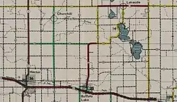 Churchill was in Sections 26, 27, 34, and 35 of Brookfield Township.[2] The community was located north of Hector, Minnesota on the Chicago, Milwaukee, and St. Paul Railway (CMStP).[3]
