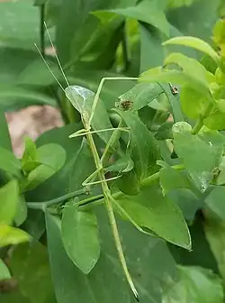 A common walking stick (Diapheromera femorata) found inside Churchville Nature Center's Butterfly House