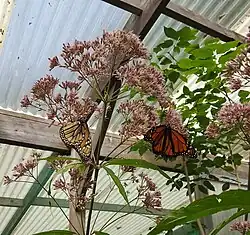 The Janet V. Machiewitz Butterfly House opened in July 2014 after several years of in-house construction by a team of volunteers under the direction of then Director Chris Stieber and lead Volunteer George Belfield.[5] The house was designed to showcase the different species of butterflies native to Pennsylvania in an effort to promote awareness and appreciation for pollinators and their overall conservation needs. The house rears butterflies onsite and maintains an ever-changing internal and external series of gardens that promote both native butterfly host and feeder plants. Working as both an exhibit and conservation effort, the center actively uses the butterfly house grounds as an area to plant currently uncommon or rare host plants native to the area in an effort to attract equally as uncommon butterflies. A grove of common pawpaw and several common hoptree were planted in the butterfly house enclosure back when the structure was being built to attract the zebra swallowtail and giant swallowtail to the Churchville area.