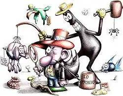 It is a zany parody of traditional crime-noir literature.[3] It features a little, bald and scorbutic detective that, helped by his loyal assistant Gallina ("Chicken"), try to catch Zagar, a black-dressed criminal that is an expert in disguises.[2][4]