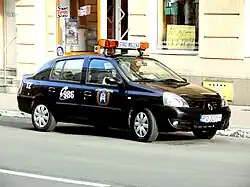 They are known to be equipped with batons, handcuffs, tear gas spray and, more recently, tasers.[2] They can also be equipped with firearms when performing municipal property security guard or valuable transporting duties. Because of their decentralized nature, the uniforms and vehicle liveries of the City Guards vary greatly. They also have hats or caps with a characteristic yellow-black checkerboard pattern.