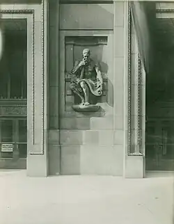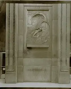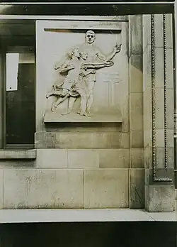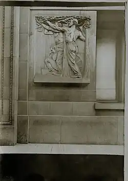 The main (west) City Hall entrance features four reliefs sculpted by John Flanagan.[19] Each of the panels represents one of four principal concerns of city government: playgrounds, schools, parks, and water supply.[19]