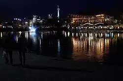 The City Park Ice Rink (Hungarian: Városligeti Műjégpálya) is a public ice rink located in the City Park of the Hungarian capital Budapest, between the Heroes' Square and the Vajdahunyad Castle. Opened in 1870, it is the World's largest[1] continuous artificial ice rink as well as one of the oldest open-air ice rinks in Europe. In summer months the area is filled up with water to create a pond, which is primarily used for boating, but also hosted several special events, such as the snowball fight world record attempt in 2009[2] or the Art on Lake exhibition in 2011.[3]