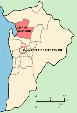 The City of Salisbury is a local government area (LGA) located in the northern suburbs of Adelaide, South Australia. Its neighbours are the City of Playford, City of Tea Tree Gully and City of Port Adelaide Enfield.