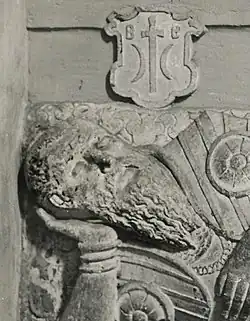The oldest material testimony to the history of the family is the image of the Ostoja coat of arms, discovered during the conservation works of the church of St. Nicholas in Wysocice. The emblem engraved on the portal of the temple probably comes from the first half of the 13th century. It is known that the completion of the construction of this church was funded by knight Mikołaj from Ściborzyce of the Ostoja coat of arms. Certainly, the rite of the Ostoja coat of arms cannot come from a later period, because the sons of Mikołaj – Strachota and Ścibor sold their father's village in 1252 to the Cistercian monastery in Szczyrzyc and left Ściborzyce and moved to the northern regions of Poland. An important historical memento of the family is also the sale document of Ściborzyce, which is the approval of the transaction by Bolesław the Chaste. The original parchment document is dated 14 May 1252[21] and its content was published in the Diplomatic Code of Lesser Poland in 1876.[22] It is possible that the ancestor of the above-mentioned heirs of Ściborzyce was the knight Cistebor (Cistibor), who in 1110 offered unum pallium to the Krakow cathedral.