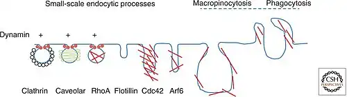 4. ^ Mayor S, Parton RG, Donaldson JG (June 2014). "Clathrin-independent pathways of endocytosis". Cold Spring Harbor Perspectives in Biology. 6 (6): a016758. doi:10.1101/cshperspect.a016758. PMC 4031960. PMID 24890511.