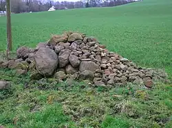 A clearance cairn is an irregular and unstructured collection of fieldstones which have been removed from arable land or pasture to allow for more effective agriculture and collected into a usually low mound or cairn. Commonly of Bronze Age origins, these cairns may be part of a cairnfield (a collection of closely spaced cairns) where some cairns might be funerary.[1] Clearance cairns are a worldwide phenomenon wherever organised agriculture has been practised.[2]