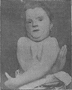 Female child patient described by Marie and Sainton, 1898, showing absence of clavicles