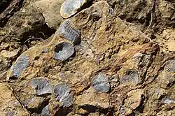 Many of the fossils are found in the rocks forming Fossil Hill, comprising spectacularly exposed dipping strata spanning a period of just over one million years. Fossils have also been described from the limestone on the adjacent Dunhill Bluff and Trilobite Hill, and from the siltstones and interbedded limestones between Trilobite Hill and Coppermine Creek.[2]