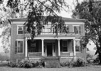 Clover Hill, also known as Colonel Edmund Jones House, is a historic plantation house near Patterson, Caldwell County, North Carolina. Located on a knoll within the Happy Valley at the foot of the Appalachian Mountains, Clover Hill was built in 1846 by Colonel Edmund W. Jones for his bride Sonia C. Davenport. It is a two-story, five-bay, brick, Greek Revival-style house. The house sits on a raised basement and has a hipped roof. Additionally, it features a shed porch supported by four handsome fluted Ionic order columns. Inside the house, the interior is decorated with typical Greek Revival trim, such as Ionic and Doric colonnettes.[2]