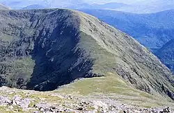Devil's Ladder col as seen from Carrauntoohil, with the summit ridge to Cnoc na Toinne behind