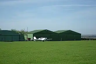 The airfield is operated from an on-site farmhouse and prior permission is required for landing. Its single strip grass runway is 660 m long and not entirely flat, with a dip in the middle and a hump at the eastern end. The older hangar at Coal Aston is a Blister-type hangar, a type made familiar during the interwar years. It was erected by United Steel Companies Limited (later British Steel) in 1961. The runway was then at its maximum length of around 800 m; it was reduced to 660 m in 2015. A second hangar was erected in the 1980s next to the blister. In 1995, the airstrip achieved permanent permission for use as an airfield; it is now one of the last remaining traditional grass airfields in Derbyshire.