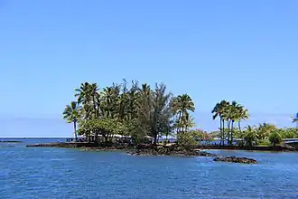 Coconut Island, or Moku Ola is a small island in Hilo Bay, just offshore from Lili'uokalani Park and Gardens, in Hilo, off the island of Hawaii. It is a small park, and is connected to the main island via a footbridge. The island includes a large grassy field, picnic areas, restroom facilities, and a few tiny sandy beaches.[1] [2] A popular recreational activity is to jump off the tower into the waters of Hilo Bay.