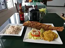 On the Caribbean coast of Colombia and Panama, arroz con coco is a typical side dish for fish. It is made with white rice cooked in a base of coconut milk and combined with shredded coconut meat, water, salt, raisins (optional), and sugar.