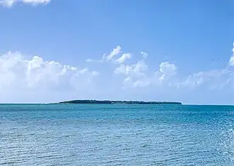 Cocos Island (Chamorro: Islan Dåno) is an island 1 mile (1.6 km) off the southern tip of the United States territory of Guam, located within the Merizo Barrier Reef, part of the municipality of Malesso'. The island is uninhabited, 1,600 meters (5,200 ft) long in a southwest–northeast direction, between 200 m (660 ft) and 300 m (980 ft) wide, and has an area of 386,303 m2 (95.458 acres).[1] It sits atop the southwestern coral reef rim of Cocos Lagoon.