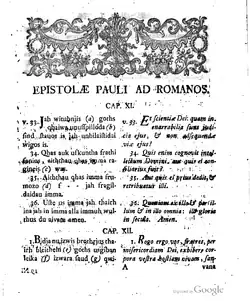 {{cite book}}: CS1 maint: location missing publisher (link) - ^ F. A. Knittel, Fragmenta Versionis Ulphilanae, Upsaliae 1763.