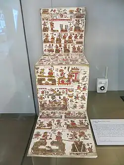 The Codex Selden (also known as the Codex Añute) is a Mexican manuscript of Mixtec origin. The codex is an account of the genealogy of the Jaltepec dynasty from the tenth to the 16th century. Codex Selden is possibly a fragment of a much longer improperly stored document. Although it was completed after the arrival of the conquistadors in the Mixtec region, it is considered one of the six pre-Hispanic Mixtec codices that survived the Spanish conquest of the Aztec Empire.[1] The last date mentioned in the Codex is 1556, which can be interpreted as the date when the codex was finished.[2]