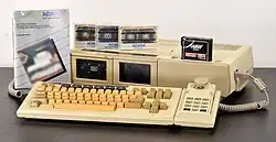 A unique feature of the Adam was its use of modified cassette tapes for storage, the "Digital Data Pack" (DDP). In contrast to the many similar systems used on other computers of the era, which used unmodified tape mechanisms, the DDP system used a custom mechanism that ran the tape over ten times as fast, 20 inches (51 cm) per second rather than a normal cassette's 1.875 inches (4.76 cm) per second.[40] This allowed it to transfer data more rapidly, closing the gap between the inexpensive but slow cassettes and the faster but more expensive floppy disk systems. The practical data rate was around 1.4 kbytes per second,[40] in contrast to cassette formats of the era which were mostly between 300 and 1,200 bits per second, or a floppy disk like the Disk II at around 13 kbytes per second.