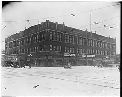 The Coliseum Building and Hall is located at 2708 East Lake Street in Minneapolis, and a center of the "downtown" Longfellow community. It was designed by architect L. J. Johnson in the late-19th-and-early-20th-century Classical Revival style. The building is rectangular in shape and features three stories, a brick façade, and a decorative parapet. The first level features store fronts.[2] Over its history, the structure has had several additions, and has been referred to as the Coliseum Ballroom and as Podany’s Warehouse. Its architectural significance is for the period of 1917 – 1973.[2]