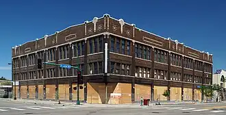 ![]() The boarded up Coliseum Building in 2022 viewed from the southwest | |