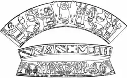 The Colla chiefdom and the Lupaqa chiefdom developed a rivalry,[26][2] potentially linked to linguistic differences (the Lupaqas spoke an Aymara language, while the Qollas spoke Puquina). The anthropologist Alfredo Torrerro places the beginning of the conflict in the 14th century, at the time of important Aymara migrations. According to him, the Lupaqas represented the new Aymara ethnicities, while the Qollas represented the ancient Puquina population.[2] During the reign of Viracocha Inca, ruler of the growing Cusco confederation, the Incas publicly gave their support to the two main Colla chiefs, but secretly made an alliance with the Lupaqa ruler, named Cari. Learning of the alliance, the ruler of Hatunqulla invaded Lupaqa territory, but was defeated in a battle at Paucarcolla. The Inca armies arrived after the confrontation, and conducted a pact with Cari.[26] The meeting between the two rulers took place in Chucuito, where they swore eternal peace by sharing a kero of chicha as a symbol of their friendship. The kero was transported to a temple by priests in the middle of dances and music being performed to commemorate the event.[28]
