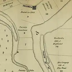 USS Exchange was damaged by Confederate artillery near Columbia in June 1864.[7] The settlement was "burned in retaliation" for attacks on U.S. Navy gunboats during the American Civil War.[8] It is believed that the remains of the town site were eventually eroded into the Mississippi.[5] Nothing remains of the settlement today.[2]