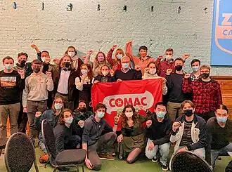 Comac is the student youth wing of the Belgian Marxist political party, the Workers' Party of Belgium (WPB), (known as PTB-PVDA in Belgium). The movement is active in 11 places across Belgium, operating in different cities, universities, as well as hogescholen.[2] Comac's projects engage in political and symbolic movements, and it frequently hosts gatherings, protests, or other actions. The organization is bilingual, with Flemish and Walloon sections cooperating on a national level.[9]