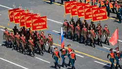 Band of the Combined Arms Academy was formed in 1998 from Frunze Military Academy Band and the Malinovsky Military Armored Forces Academy Band. This gives the band an over 85-year history. By order of the Chairman of the Revolutionary Military Council in December 1931, a military band at the Frunze Military Academy was created. The first artistic director of the band was Colonel V. Gurfinkel. During the Great Patriotic War, many musicians of the band as part of the front-line brigades went to the front with concerts for fighters and commanders of the Red Army.[3][4]