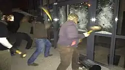 - In August 2016, CRAV attacked five wine vats belonging to distribution company Biron in the French town of Sète, releasing thousands of litres of wine which flooded into local properties.[18][19] Emergency services had to step in to prevent the floods from causing too much damage.[18]